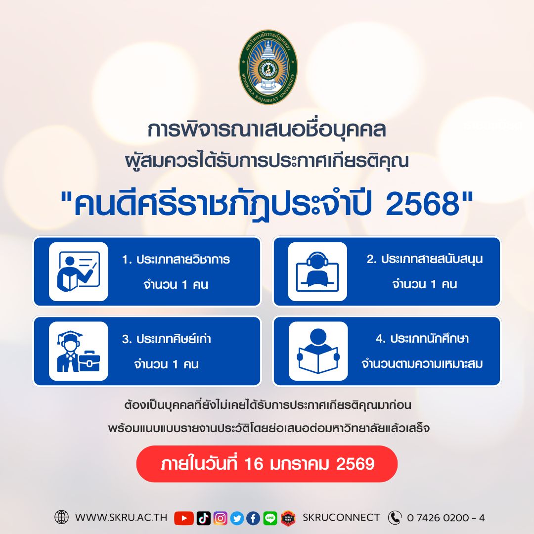 การพิจารณาเสนอชื่อบุคคลผูัสมควรได้รับการประกาศเกียรติคุณ "คนดีศรีราชภัฎประจำปี 2568"