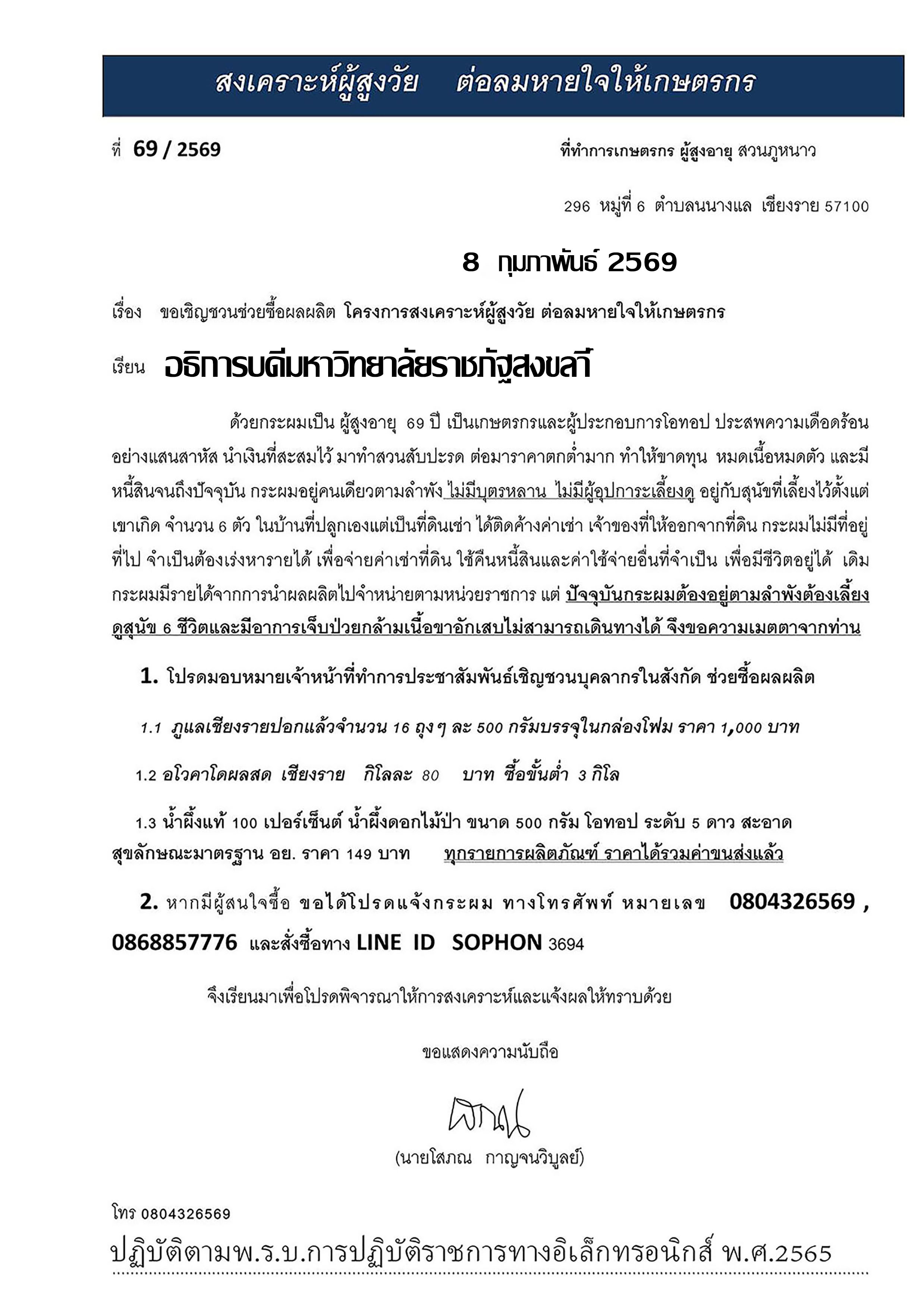 ขอเชิญชวนช่วยซื้อผลผลิต โครงการสงเคราะห์ผู้สูงวัย ต่อลมหายใจให้เกษตร